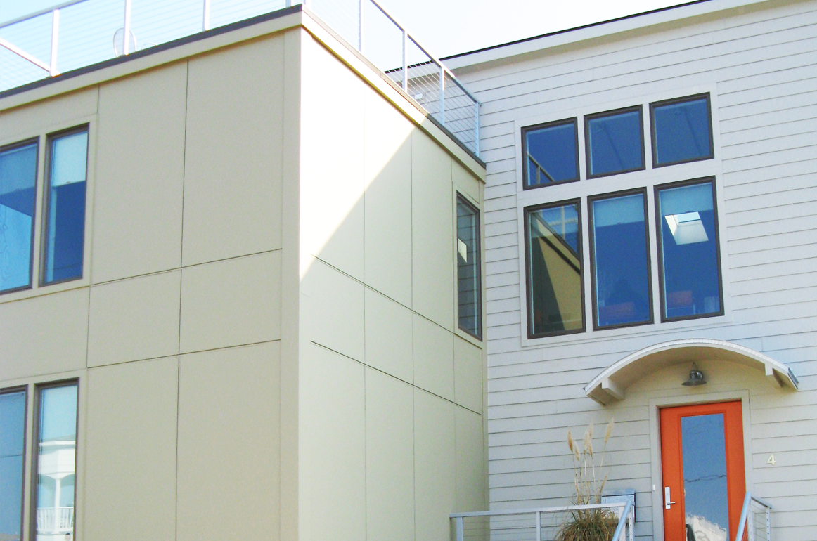 This new construction weekend home sits on a compact lot but takes maximum advantage of ocean views from multiple roof decks. The open plan allows the entire top floor living area to feel connected to the sights and sounds of the nearby beach as well as the two levels of outdoor space. The project was featured in The Washington Post Magazine on June 26, 2011.