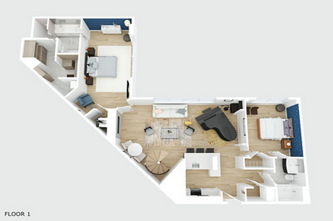 This is a total renovation of a very dated, two story condo. The primary areas of concern included a dark, awkward kitchen; the primary suite and an underutilized 2nd floor living area.